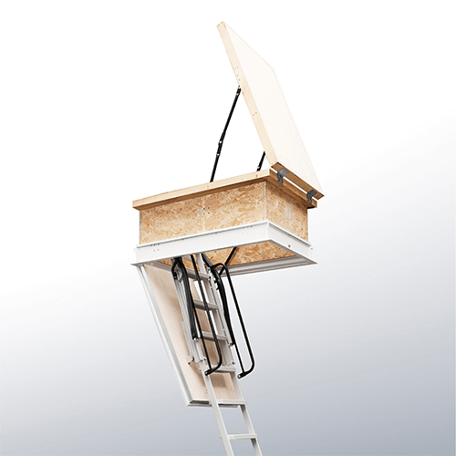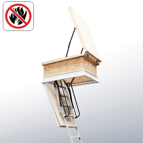 Hopfällbar vindstege Aristo med ett flerskiktkonstruktion lock av metall.Det finns en värme- och brandisolering på locket.Fogen mellan locket och ramen är säkrad med brandhämmande tejp. Den hopfällbara vindstegen är fäst vid ramkonstruktionen som är ansluten till locket.Utrymmet är stängt uppifrån med ett termiskt lock.I standardlösningen är båda locken synkroniserade med en särskild anordning.Den hopfällbara vindstegen Aristo uppfyller de grundläggande kraven: obrännbarhet i 45 minuter - som säkerställs av systemet med två isolerade lock med värmeöverföring U = 0,66 W/m2.K. Stegen tillverkas inte i atypiska dimensioner.Hopfällbar vindstege Kombo med ett flerskiktkonstruktion lock av metall.Det finns en värme- och brandisolering på locket.Fogen mellan locket och ramen är säkrad med brandhämmande tejp. En hopfällbar vindstege är kopplad till locket och fäst vid ramen.Stegens utrymme är stängt uppifrån också.Stegen tillverkas inte i atypiska dimensioner.